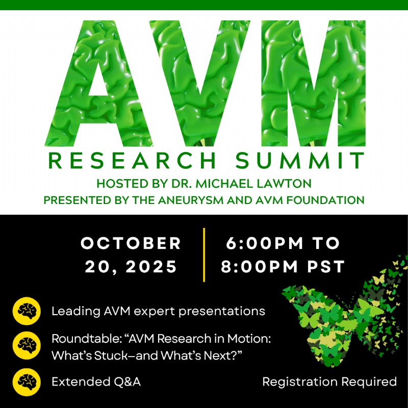 The AVM Research Summit, hosted by Dr. Michael Lawton and presented by TAAF, brings top AVM experts together to share advances and challenges in research, explained clearly for patients, families, and the wider community.
